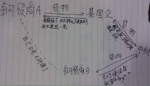 至于公告里提的第二部分都不用說了,這種交易實際就是中材以鋼材貿易的形式將貨款支付給鋼貿商名下的A公司,形式為采購鋼材。到期之后再將這批鋼材賣給該鋼貿商名下的B公司。其中差價為這次交易中材的毛利潤。而錢先付出去了,原本應該由A公司將貨轉給中材,但由于各種原因一直沒給,所以才導致了“貨物去向不明”電抗器作用。 本人稍微了解一點中材的做法,實際上中材名下的貨一直是由“中遠物流”來監(jiān)管的。(呵呵,又是一個中字頭的大公司),真的貨物丟了,你去找監(jiān)管公司賠就是了。而中材有時候為了謹慎起見,更或者是下面的操作人員為了更好的向上級部門匯報,要求付款單位不能是該鋼貿商名下的A公司,而是要求是資歷更好的大企業(yè),甚至是央企業(yè)。 但這也不難辦,該鋼貿商再找另一家央企就是嘍,過把賬留點利潤給它也不是難辦的事情。于是這個貨物就這樣流轉了: